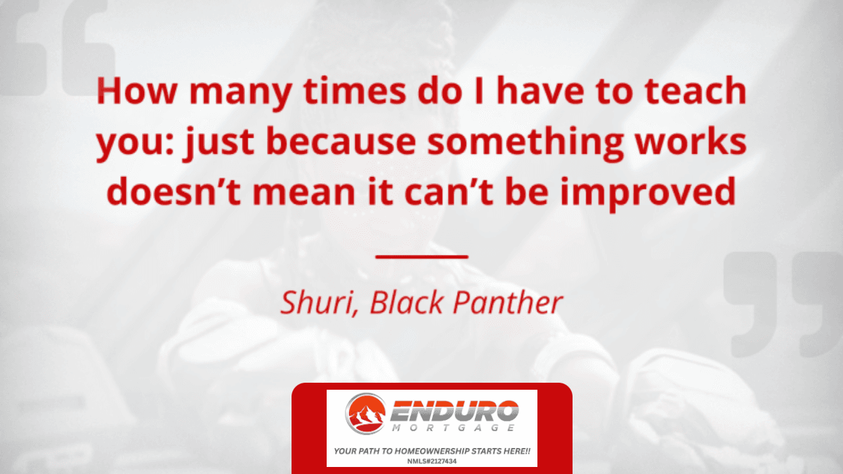“How many times do I have to teach you: just because something works doesn’t mean it can’t be improved.” - Shuri, Black PantherRepresenting: Enduro Mortgage, Colorado Mortgage Company Registration